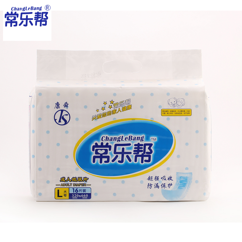 紙質尿布(紙尿片)是一種方便更換的一次性產品,不用洗滌。內有的超強吸收芯層,有快速充分吸收功能,吸收的尿液有效凝聚不回滲,確保防滲防漏,肌膚干干爽爽。同時采用防漏松緊褲邊,獨特U型設計,輕輕包住腿部,有效防止尿液側漏,讓人們無論在何種情況下都干爽清潔。 弧形立體裁剪,合體貼身。并有柔軟干爽無紡布表層,透氣性好,讓人感受舒適自然。